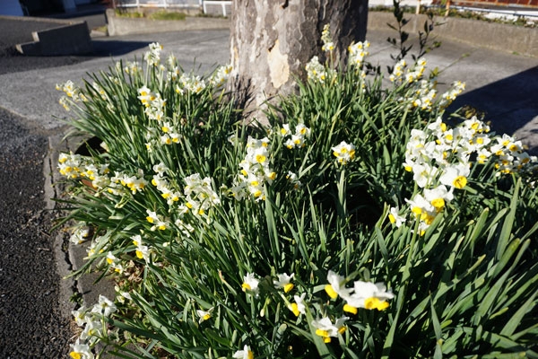 白朋苑の駐車場のすみに水仙がたくさん咲いています。