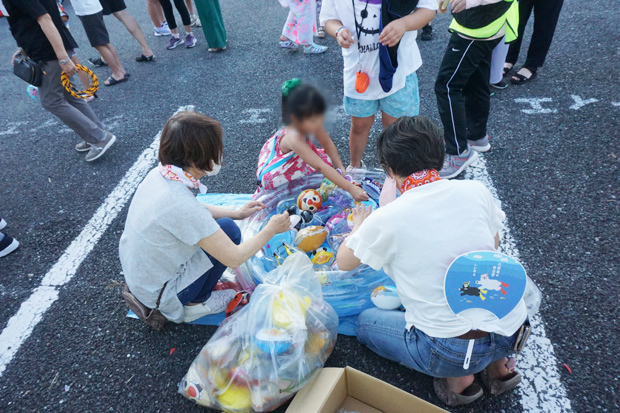 抽選にはずれた方は残念でしたが当たった方も多く、会場はしばらく興奮の熱気が感じられました。皆さん楽しんでいただけたでしょうか。地域の皆さんが顔を合わせて笑い合うひととき、子どもたちにも夏の楽しい思い出の一コマを提供できていたら幸いです。