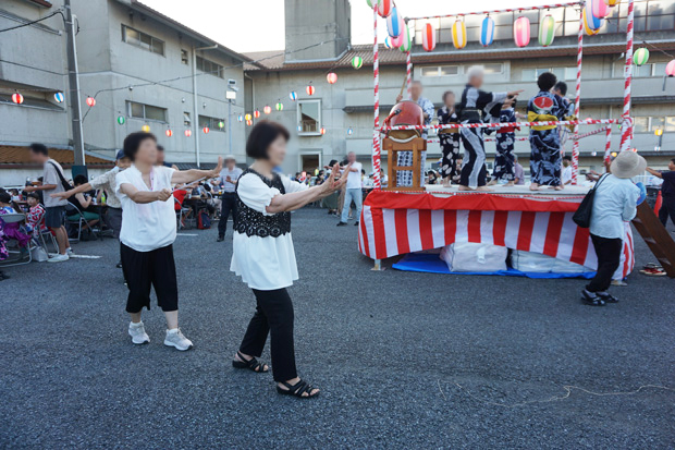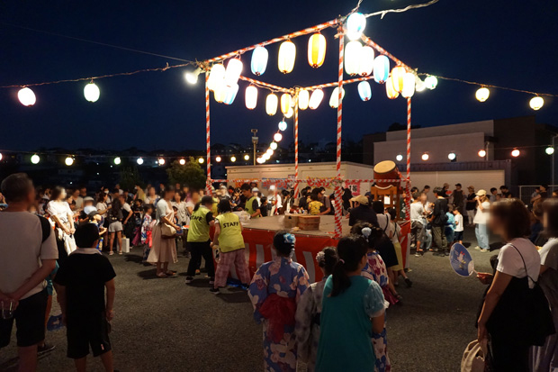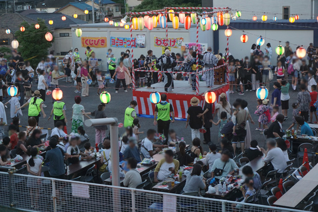 ▲盆踊りもスタートしました。南区音頭やきよしのズンドコ節でお祭り気分が盛り上がります。