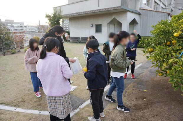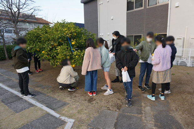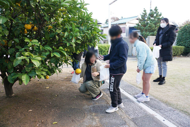 今年は別所地域ケアプラザ(地域交流担当)がハッサク狩りを企画、オレンジハウスの「子どもの居場所」に集まっていた小学生10名が参加してくれました。