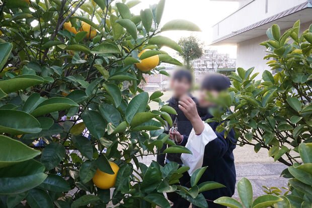 毎年、年末は白朋苑の南口のハッサクの木が大きな実を黄色く実らせ、重そうに枝を垂らす時期となります。