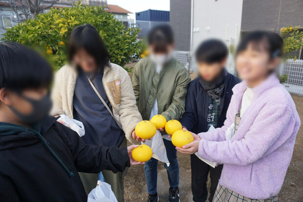 ハッサクは一人2個を持ち帰ってもらいました。そのままだと酸っぱいので4週間ほど置いた後に、ジャムなどにするのがおすすめです。酸っぱい分、甘味に負けないおいしいジャムができますよ。(簡単な作り方を書いたメモを一緒にお渡ししました)